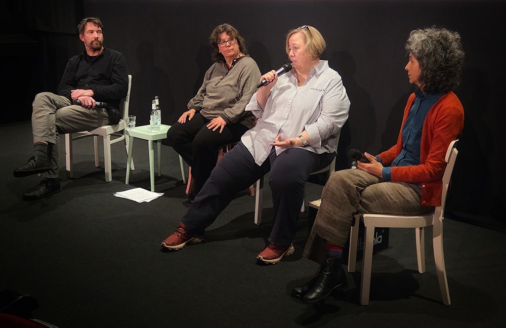 Im Anschluss an die Vorführung diskutierten Sonya Winterberg (auch laif Genossenschaftsmitglied), Journalistin Shikiba Babori und laif-Fotograf Daniel Pilar mit der Moderatorin Carmen Molitor über die Herausforderungen journalistischer Arbeit in Kriegs- und Krisengebieten.