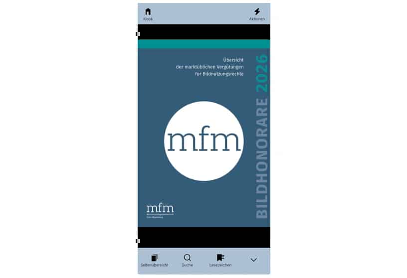 Die neue Ausgabe 2026 der BILDHONORARE ist nun auch im ePaper-Format für mobile Endgeräte oder den Desktop verfügbar. Nutzer der mobilen ePaper-Version für iOS- und Android-Geräte können sich über Features wie die Suchfunktion, den Lesemodus oder die Tabellen-Einzelansicht freuen, die eine einfache Navigation innerhalb der Ausgabe ermöglichen.